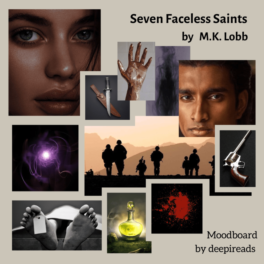 The intriguing cover and the title made me pick this book. Being a fantasy lover, I knew I would love this book even before starting it. What made me love it even more is that its sub-genre is a murder mystery, one of my favourite genres. The book “Seven Faceless Saints” by M.K. Lobb is a mixture of fantasy and mystery and has become my new favorite.